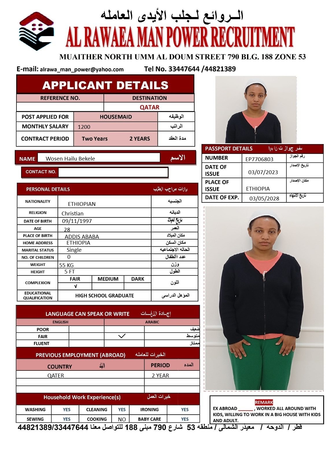 الدوحه / معيذر الشمالى / شارع ام الدوم منطقه 53 شارع 790 مبنى 188