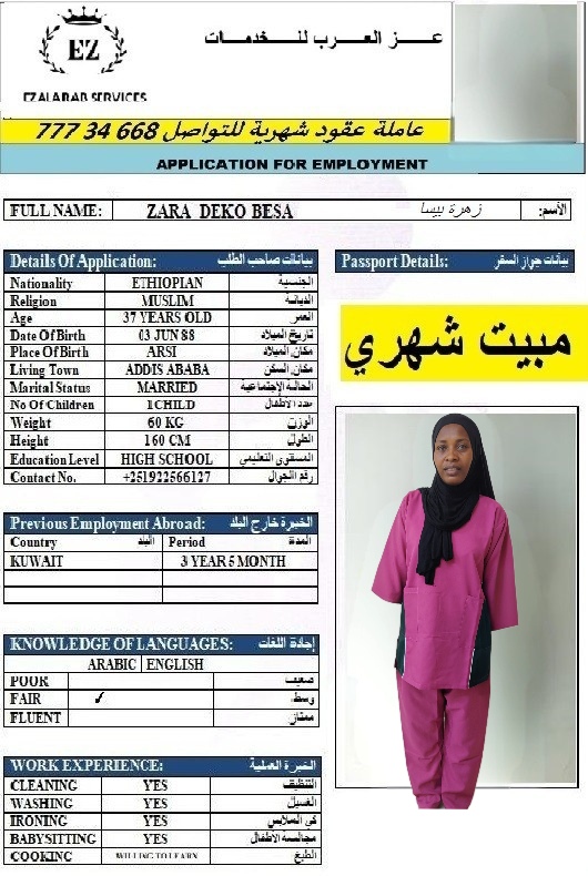 عامله منزليه اثيوبيا بعقد شهري مبيت