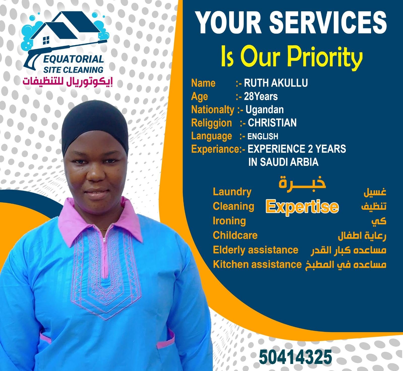 We have experienced house maids , very friendly and ready to live happily with you our precious clients. Taking care of children, elderly, cooking and general cleaning.